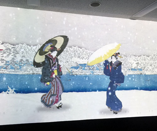 この説明の間も、浮世絵の中の人物が行き来して映像が切り替わっていくので、説明の意味が全部はわからなくてもムスメもそれなりに飽きずに見ていられました。