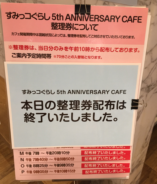 両方をきっちり抑えたい方は、朝イチでこのカフェの列に並び整理券をゲット、すみっコぐらし展の会場に向かうのはその後!ってコースがよさそうです。