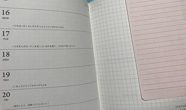 これならきっと、記入をあまりしない週なんかがあってもなんかいいかなって思えちゃいそうなゆるさがいいですね。