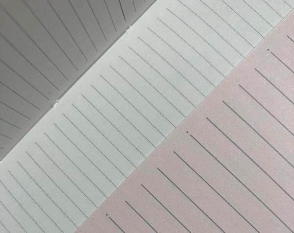 ピンクのノートはB罫。比較対象として載せてみました。